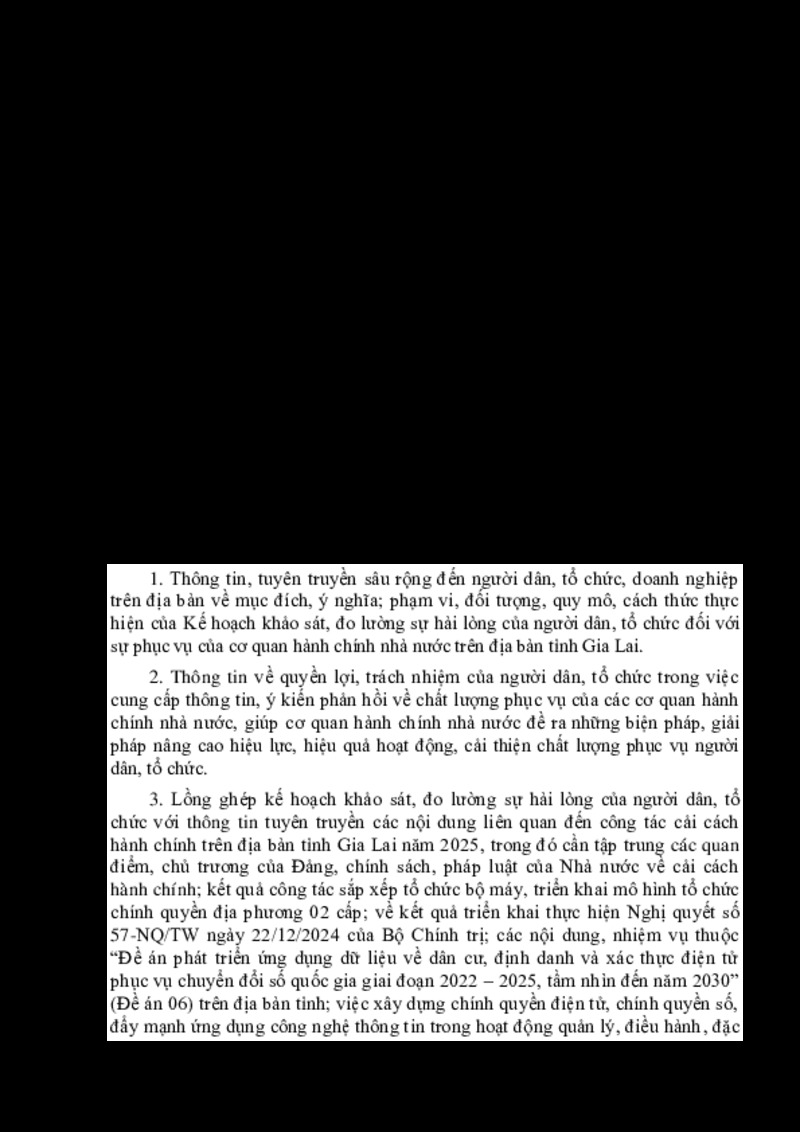 | Tiêu đề văn bản | Công văn đề nghị tuyên truyền Kế hoạch khảo sát, đo lường sự hài lòng của người dân, tổ chức đối với sự phục vụ của cơ quan hành chính nhà nước năm 2025 trên địa bàn tỉnh Gia Lai | ||