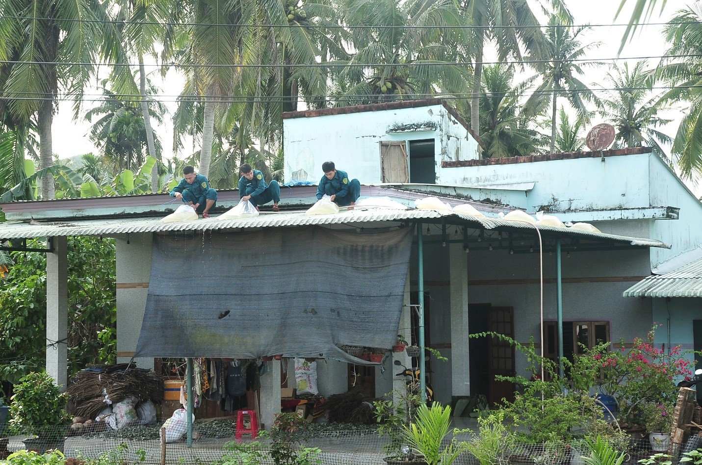 Theo đó đồng chí đã trực tiếp đến 15 hộ gia đình người cao tuổi, neo đơn có hoàn cảnh khó khăn, kiểm tra hiện trạng nhà cửa của từng trường hợp để chỉ đạo kịp thời trong công tác phòng chống, hỗ trợ khi có bão lũ xãy ra. Tại buổi kiểm tra, lực lượng dân quân thường trực phường đã thực hiện đổ nước vào bao nilong chèn mái tôn nhà ông Phan Ngọc Hưng, khu phố Lại Khánh Nam, nơi bà Phan Thị Minh- hộ người cao tuổi neo đơn (chị ruột ông Hưng) đến tránh trú trong lúc diễn ra bão lũ.