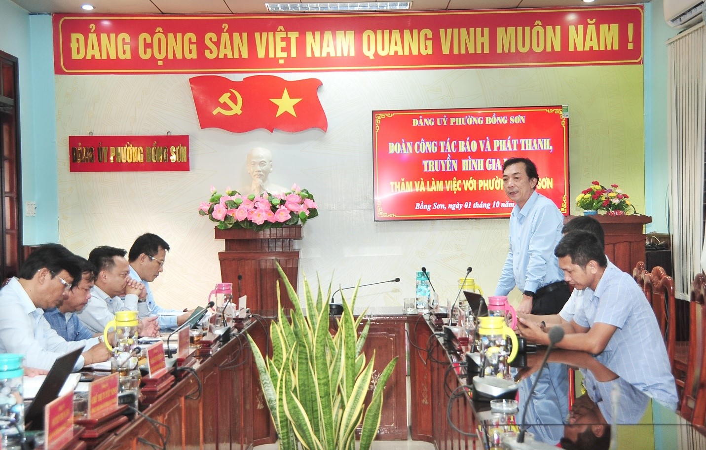 Sáng ngày 1/10/2025, Đoàn công tác Báo và Phát thanh, truyền hình Gia Lai do đồng chí Lương Văn Danh- Phó tổng biên tập; Nguyễn Văn Trang – Phó Trưởng phòng Báo điện tử và nội dung số cùng phóng viên đã về làm việc với Đảng uỷ phường Bồng Sơn nhằm nắm tình hình cơ sở, phục vụ cho hoạt động tuyên truyền trong thời gian tới. Làm việc với Đoàn, về phía địa phương có đồng chí Võ Ngọc Bình- Bí thư Đảng uỷ, Chủ tịch HĐND phường; Nguyễn Trung Đạt – Phó Bí thư thường trực Đảng ủy; Nguyễn Đình Chiến – Phó Chủ tịch UBND phường cùng đại diện các phòng, ban của phường.