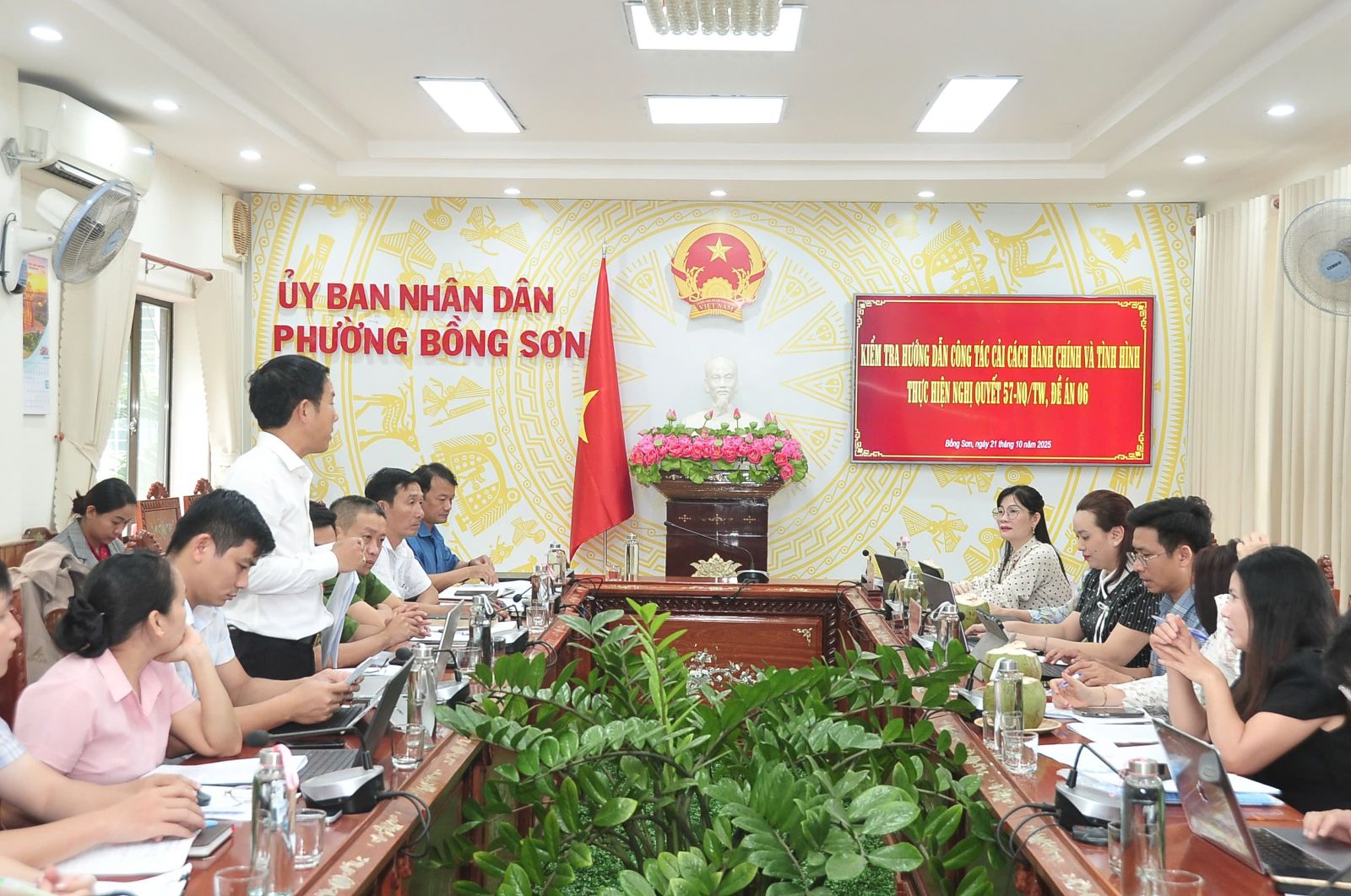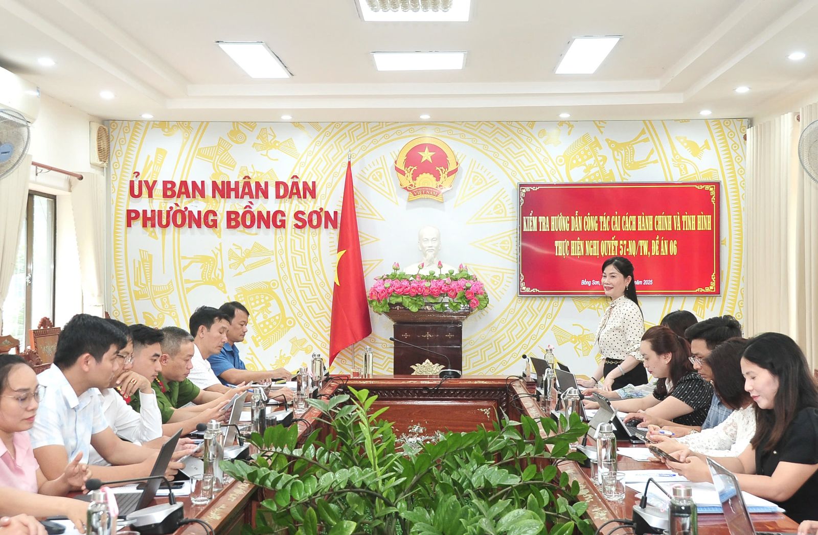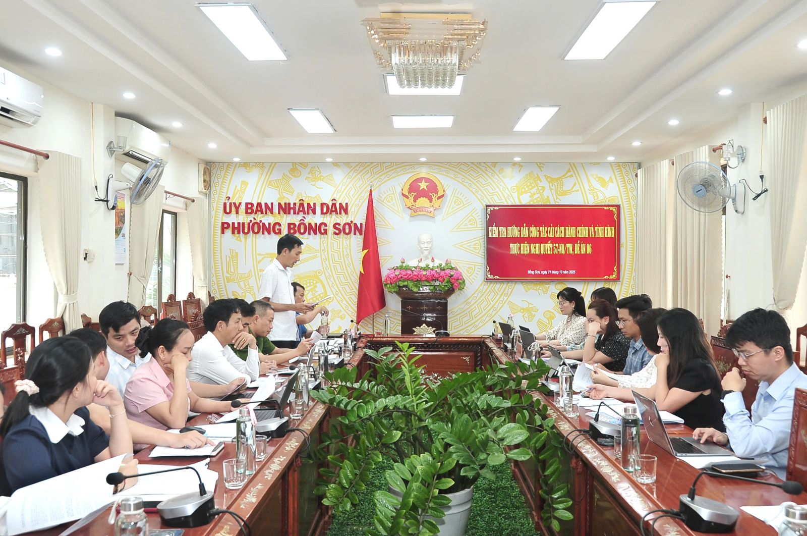 Chiều ngày 21/10/2025, Đoàn kiểm tra, hướng dẫn cải cách hành chính của tỉnh Gia Lai đã về kiểm tra, hướng dẫn công tác cải cách hành chính tại phường Bồng Sơn. Tham gia Đoàn kiểm tra có bà Trần Thị Thu Lượng- Phó Giám đốc Trung tâm phục vụ hành chính công tỉnh, Nguyễn Thị Ánh Tuyết - Phó trưởng phòng (Sở Tư pháp). Làm việc với Đoàn, về phía phường Bồng Sơn có đồng chí Nguyễn Đình Chiến - Phó Chủ tịch UBND phường, lãnh đạo các phòng, trung tâm liên quan.