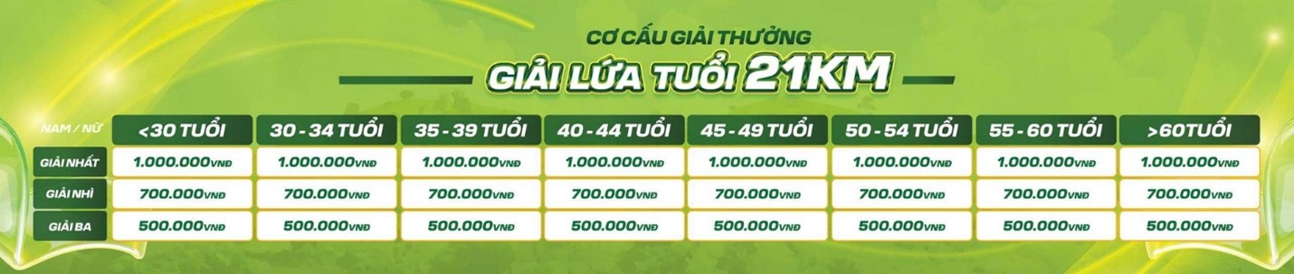 - Vận động viên tham gia thi đấu cự ly 21km phải từ 16 tuổi trở lên (sinh năm 2009 trở về trước).