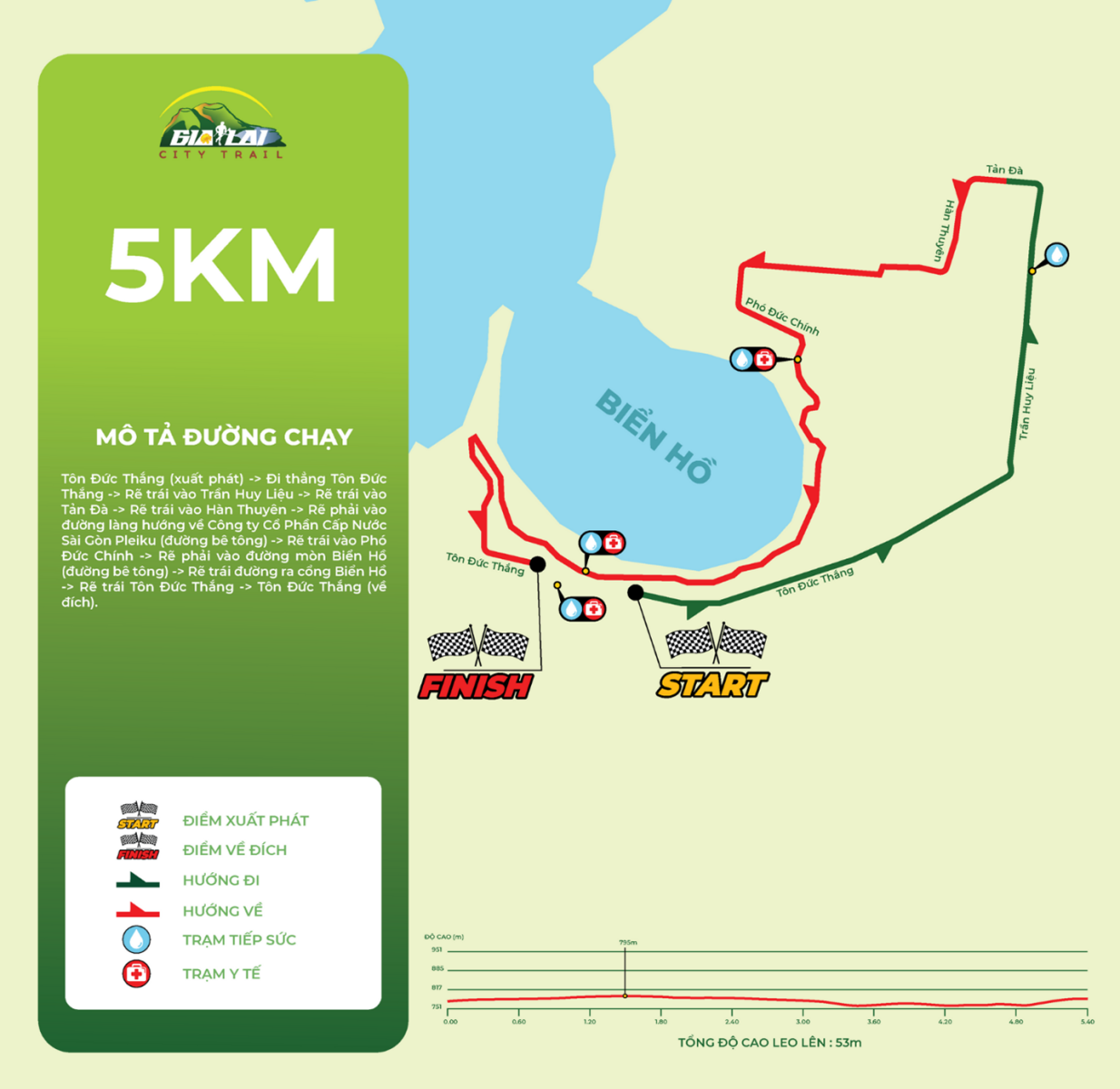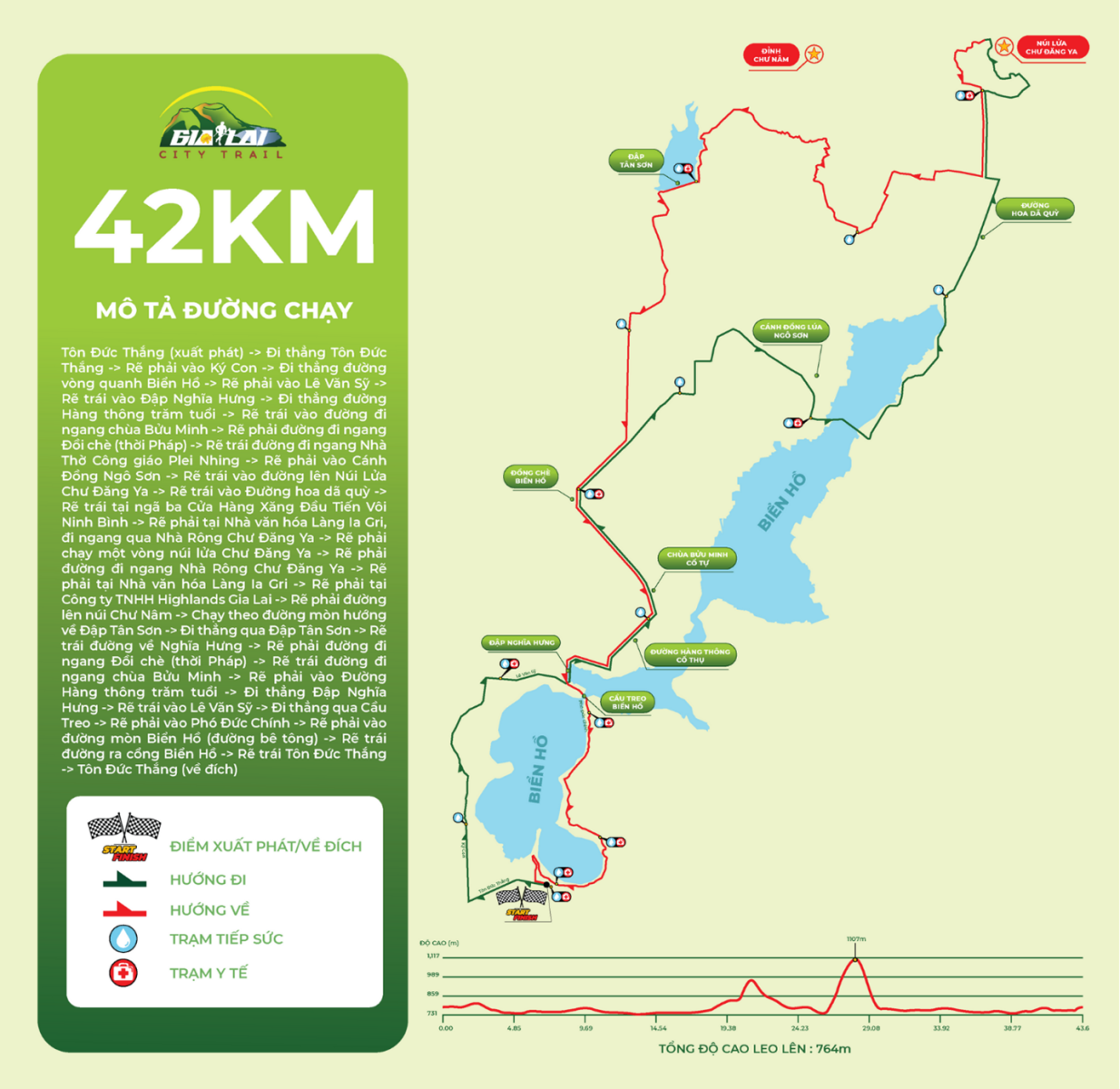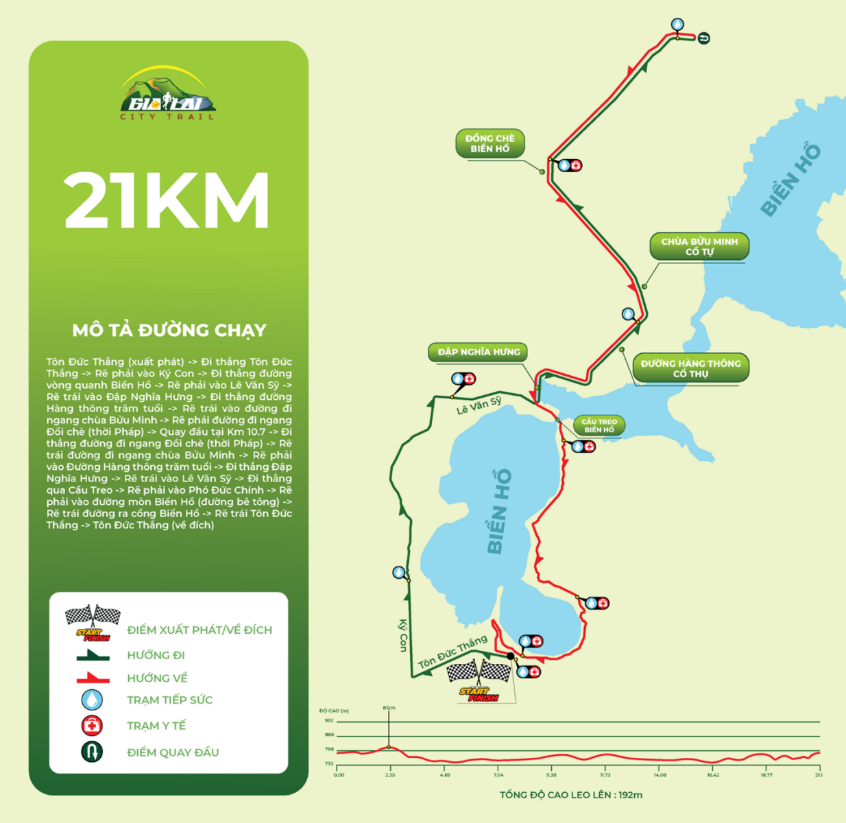 - Địa điểm xuất phát và về đích: Cổng chính Khu di tích Thắng cảnh Biển Hồ, đường Tôn Đức Thắng, xã Biển Hồ, TP. Pleiku, tỉnh Gia Lai
