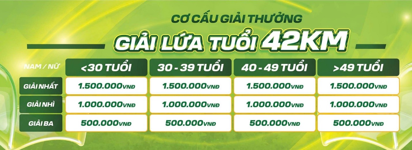 - Vận động viên tham gia thi đấu cự ly 42 km phải từ 18 tuổi trở lên (sinh năm 2007 trở về trước).