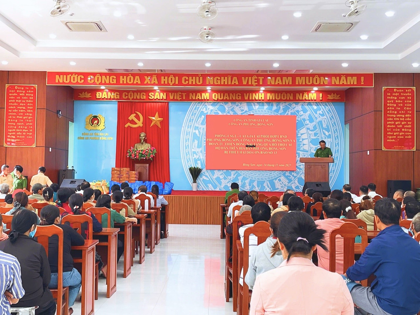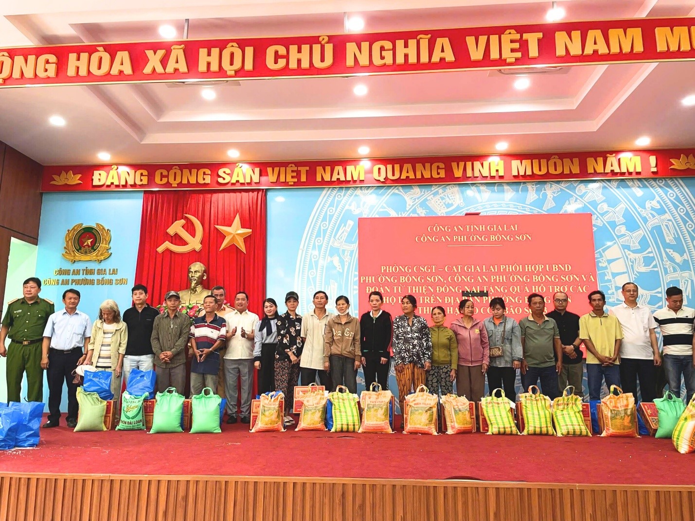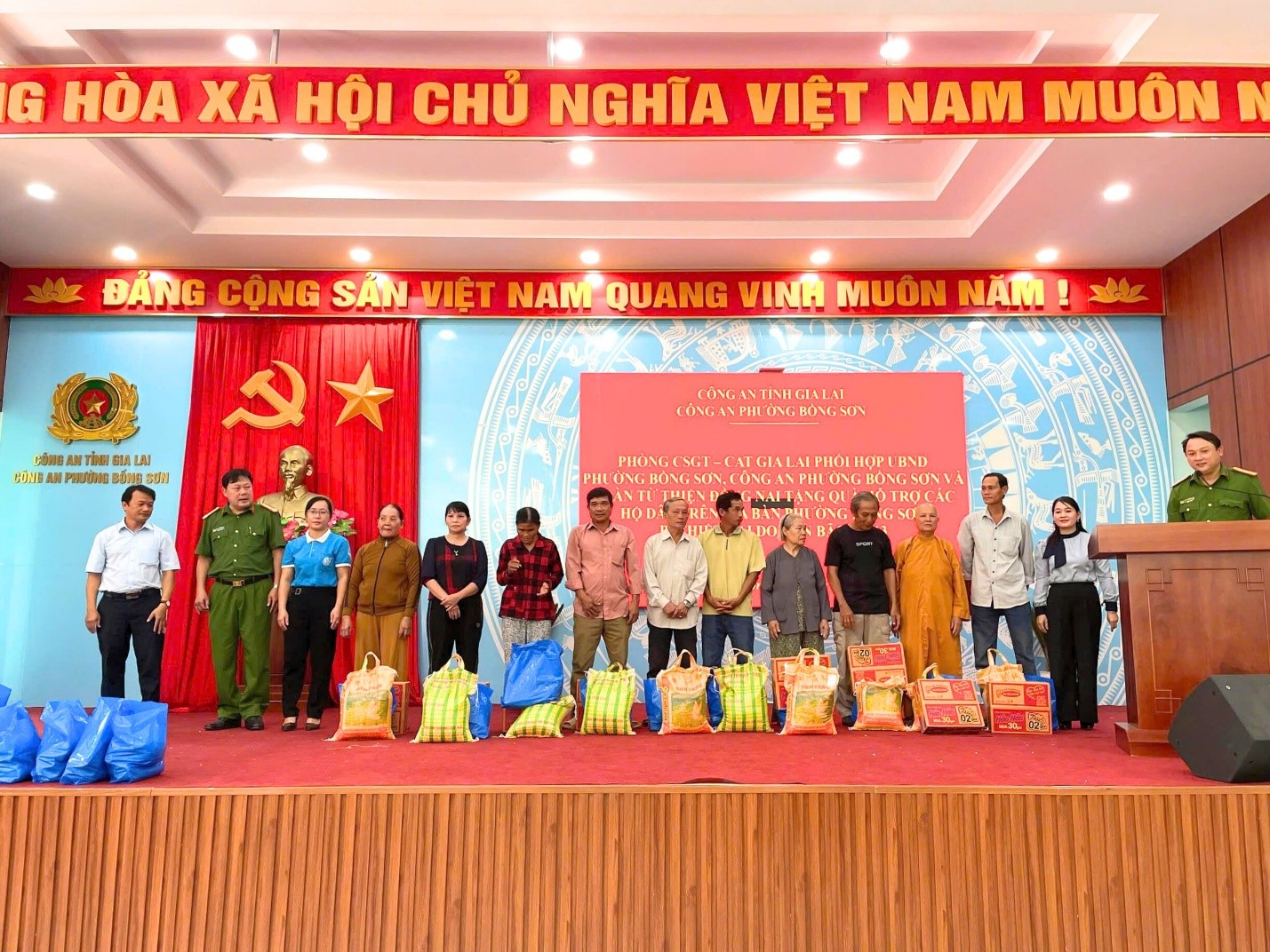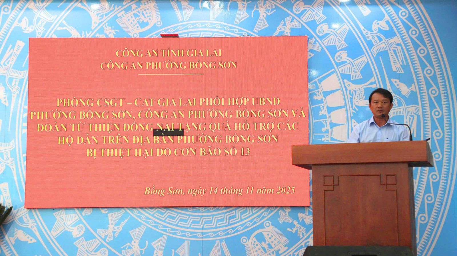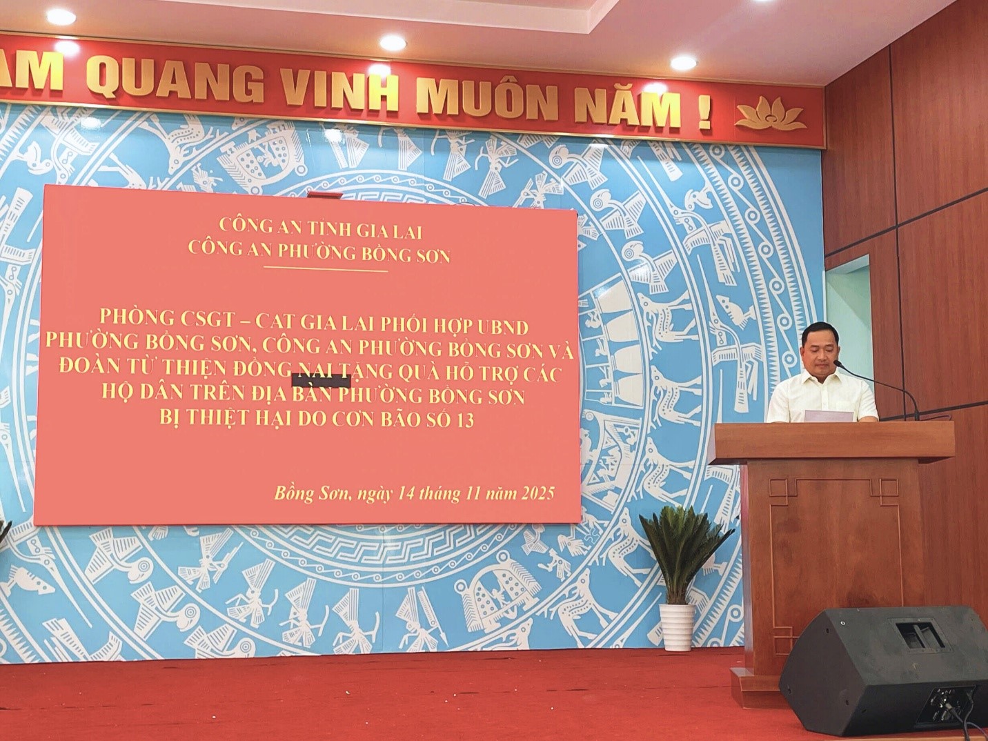 Sáng ngày 14/11/2025, Phòng Cảnh sát giao thông Công an tỉnh Gia Lai phối hợp UBND phường Bồng Sơn, Công an phường và Đoàn từ thiện Đồng Nai tặng quà hỗ trợ các hộ dân bị thiệt hại do bão số 13 trên địa bàn phường.