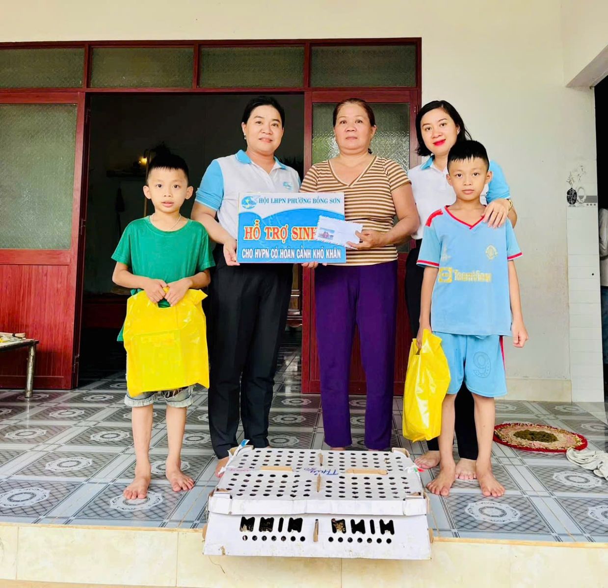 Chị Lê Thị Kim Kha, 36 tuổi, khu phố Định Bình Nam, đời sống kinh tế của chị khá khó khăn khi một mình chị vất vả nuôi 4 con đang học từ lớp 2 đến lớp 7. Chồng bỏ đi, năm mẹ con chị dắt díu nương nhờ cha mẹ ruột cũng đã già yếu. Chị có nghề may nhưng không thể đi làm xa bởi còn chăm sóc và đưa đón 4 con hàng ngày đi học. Công việc làm nông không phù hợp sức vóc vốn đã rất yếu của chị nên không đủ đắp đổi. Hội phụ nữ phường cũng đã đưa ra các biện pháp hỗ trợ nhưng việc trao sinh kế lâu dài lại cần đến sự phù hợp hoàn cảnh của đối tượng. Do đó, sau khi nghiên cứu, năm 2024, các chị đã quyết định trao cho chị Kha một máy may. Chị Kha cho rằng đây là sinh kế phù hợp với chị, bởi trước đó chị cũng đã có nghề may. Đến nay, chị Kha đã vươn lên thoát nghèo, từng bước ổn định cuộc sống.