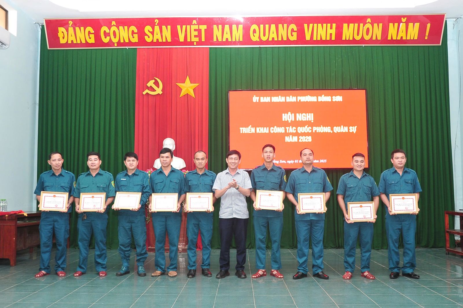 Dịp này, UBND phường Bồng Sơn đã khen thưởng 4 tập thể và 9 cá nhân có thành tích xuất sắc trong công tác thực hiện nhiệm vụ quốc phòng, quân sự năm 2025.